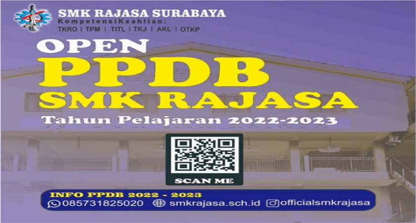Terkait informasi PPDB SMKS RAJASA TP 2022-2023 sudah dapat dilakukan, untuk informasi lebih lengkapnya silahkan datang ke Alamat: JL. Genteng Kali No. 27 Surabaya, atau hubungi kami di: (031)-5344810.